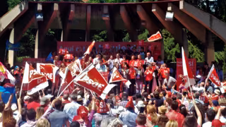Centenares de simpatizantes y militantes agitaban banderas del PSOE y sostenían pancartas bajo el lema 'Aquí está la izquierda', entre otros. El calor y el sol han acompañado a los partidarios de Sánchez en su último acto campaña luciendo sombreros rojos con el eslogan de su campaña 'Sí es sí' rotulado.