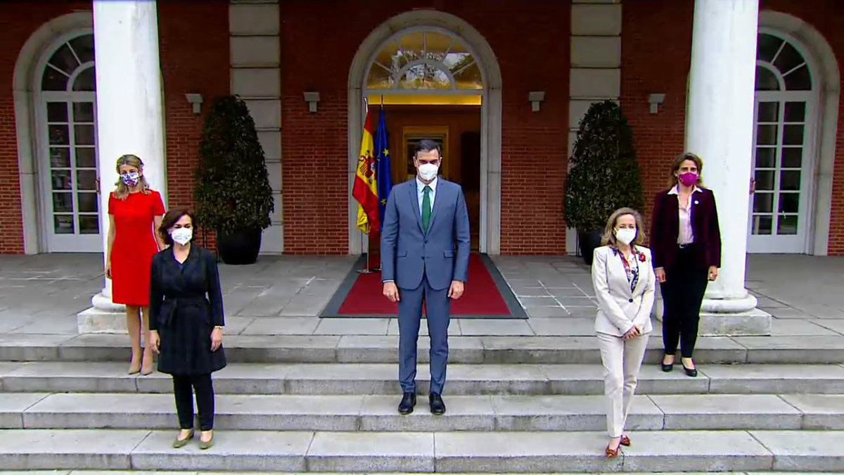 De esta forma, las cuatro vicepresidentas del Gobierno pasan a ser mujeres, algo que Pedro Sánchez ha destacado, dejando claro que su Ejecutivo es el sexto que tiene mayor proporción de mujeres y el cuarto dentro de la Unión Europea.