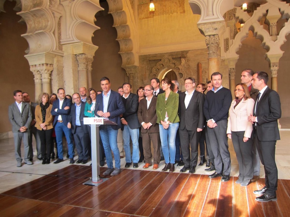 Sánchez ha ofrecido una rueda de prensa en Zaragoza con motivo de la reunión del Consejo Político Federal, en la que ha aseverado que los socialistas han sido "arquitectos del pacto constitucional de 1978", recalcando que "nos reconocemos en él".