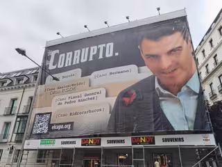 Los hechos se referían a la colocación, por parte de Hazte Oír, de una lona en la fachada del edificio situado frente al Congreso con una imagen del presidente del Gobierno acompañada del término "corrupto" en letras grandes, así como de imágenes de carpetas presididas por textos que rezaban 'caso Begoña', 'caso Ábalos/Koldo' o 'caso fiscal general de Pedro Sánchez', entre otros.