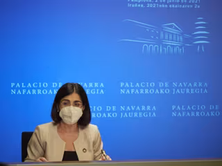La ministra de Sanidad, Carolina Darias, comparece en rueda de prensa tras presidir desde Pamplona el pleno telemático del Consejo Interterritorial del Sistema Nacional de Salud, - EUROPA PRESS