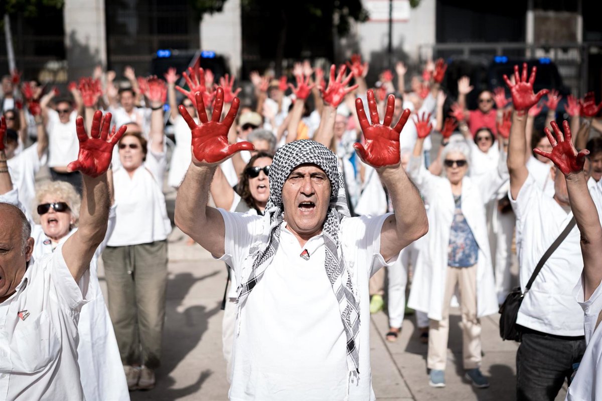 La acción, organizada por PararLaGuerra.es, ha reunido a seis entidades de la Sanidad, como la Federación de Enfermería Comunitaria y Atención Primaria o la Federación de Asociaciones en Defensa de la Sanidad Pública. También han intervenido el corresponsal de RNE, Fran Sevilla, recordando a los periodistas asesinados; y el director de teatro Lluis Pasqual, quien ha llamado a extender la 'transversalidad' de la denuncia del genocidio desde el mundo de la cultura.