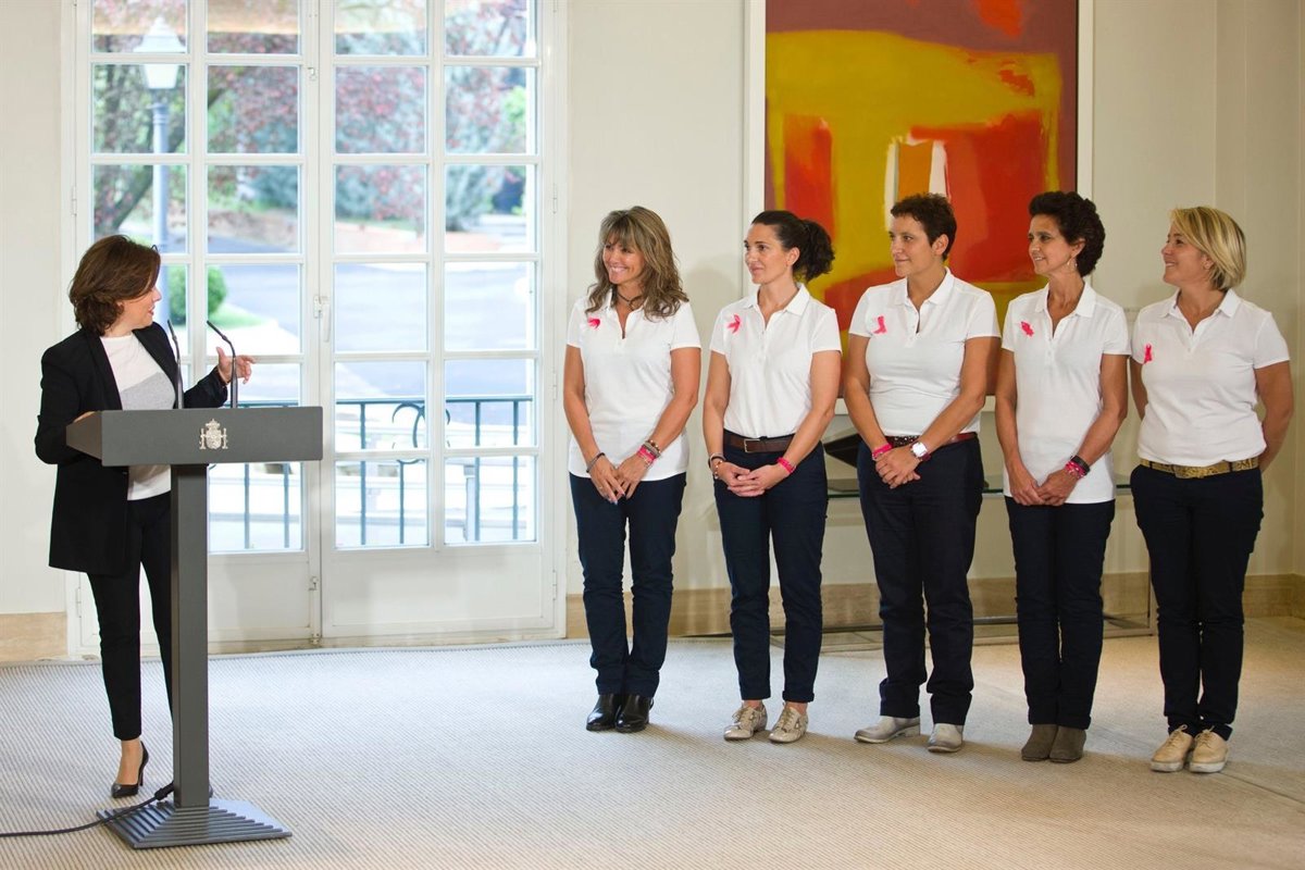 La vicepresidenta del Gobierno en funciones, Soraya Sáenz de Santamaría, ha recibido este jueves en el Palacio de la Moncloa a cinco mujeres que, tras superar su cáncer, atravesarán el océano Atlántico a bordo de un velero en menos de 14 días.