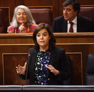 En cuanto a la advertencia del líder de Podemos sobre una posible 'operación menina' para que ella, y no Rajoy, presida el Gobierno, la actual número dos del Ejecutivo lo ha tachado de "absoluta fantasía" y ha recalcado que Rajoy es un líder fuerte que tiene detrás un equipo fuerte.