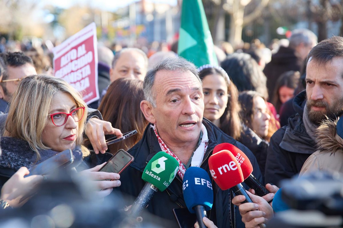 El secretario general del PCE en España, portavoz parlamentario de IU y diputado de Sumar, Enrique Santiago, ofrece declaraciones a los medios durante una manifestación en apoyo a Palestina, a 20 de enero de 2024, en Madrid (España). - Jesús Hellín - Europa Press