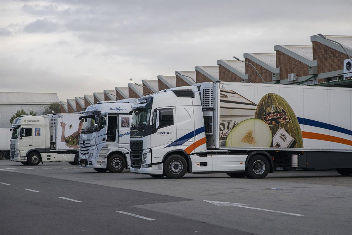 Varios camiones estacionados en las inmediaciones de Mercabarna, el día que ha comenzado la huelga de transportistas, a 14 de noviembre de 2022, en Barcelona, Catalunya (España). - Lorena Sopna - Europa Press