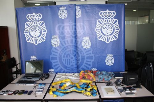 se practicaron dos registros domiciliarios en Alicante donde se intervinieron, entre otros efectos, numerosas cuerdas para escalar y cinturones de seguridad con arneses, posiblemente utilizados para cometer el delito.