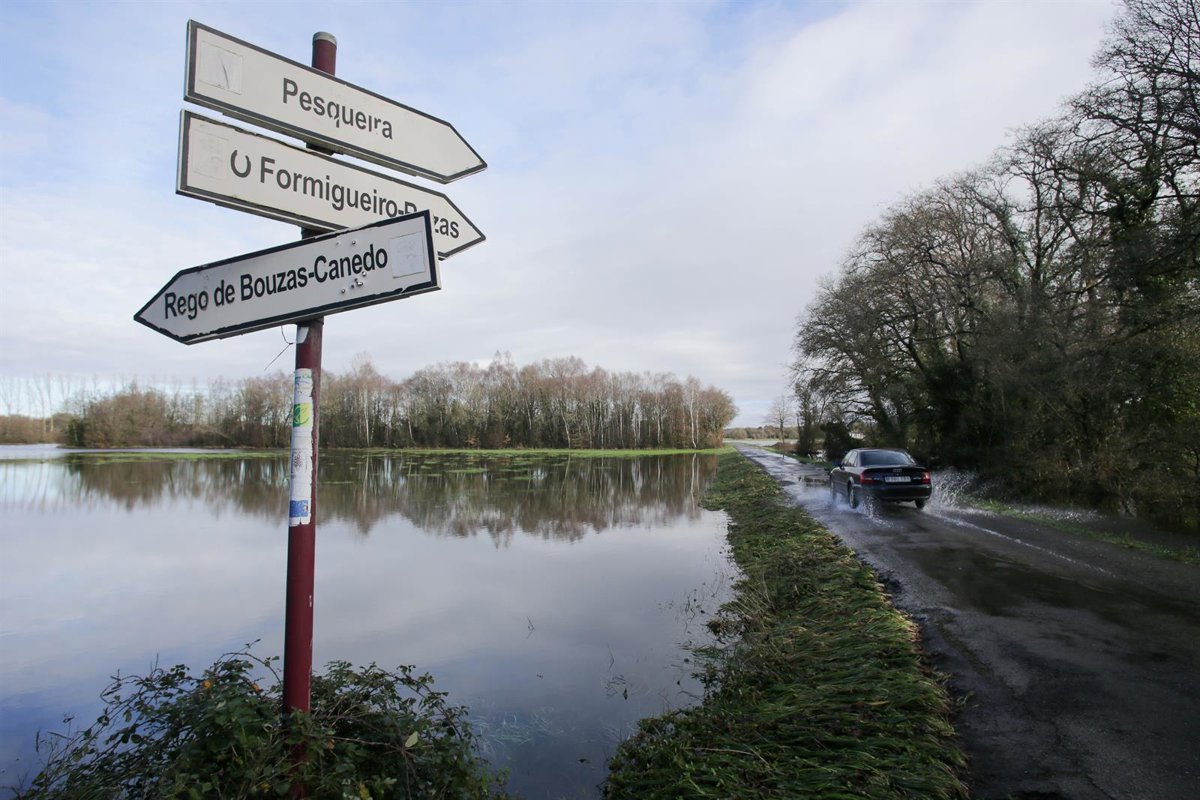 Archivo - Un coche pasa al lado de vegetación afectada por el desbordamiento del río Miño a su paso por Triabá, a 3 de enero de 2023, en Castro de Rei, Lugo, Galicia (España). - Carlos Castro - Europa Press - Archivo