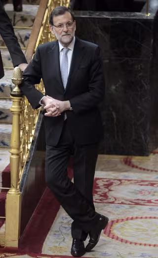 El Premio Imagen del Parlamento ha recaído en Benito Ordóñez, fotógrafo de La Voz de Galicia, por su fotografía 'Impasible', en la que se ve al jefe del Ejecutivo de pie apoyado en una barandilla del hemiciclo del Congreso con las piernas cruzadas y las manos entrelazadas mirando al vacío.