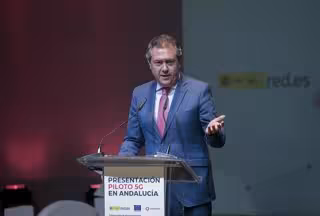 El alcalde de Sevilla, Juan Espadas, durante su intervención en la presentación del proyecto Piloto 5G en Andalucía. En el Vodafone 5G Smart Center. Sevilla, a 28 de noviembre de 2019. - María José López - Europa Press - Archivo