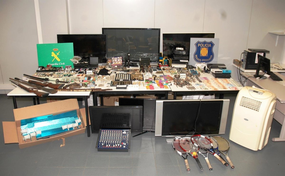 Asimismo, en los registros domiciliarios efectuados en Peñíscola, Benicarló, Benicàssim, el Grao de Castellón y en un establecimiento de compra venta de joyas en Reus (Tarragona) se han recuperado numerosos diamantes y joyas, monedas antiguas, televisores, video consolas, más de 10.000 euros en metálico, objetos de coleccionista, escopetas, katanas y una pistola de avancarga entre otros efectos.