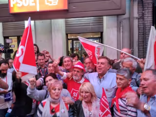 Unos 20 militantes socialistas simpatizantes del exsecretario general y candidato a la reeleción, Pedro Sánchez, han llenado este domingo de vítores y cánticos la sede socialista en Ferraz en apoyo al exsecretario. Una emoción que ha ido en aumento según se conocían los resultados de las primarias socialistas.
