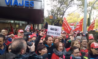 Archivo - Pablo Iglesias con los trabajadores de 'Coca-Cola en lucha' - EUROPA PRESS - Archivo