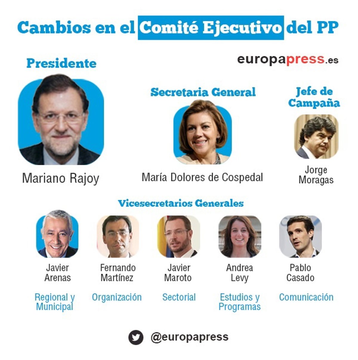 Se incorporan como vicesecretario general de Organización Fernando Martínez Maillo, como vicesecretario de comunicación, Pablo Casado y como vicesecretaría de Estudios y Programas Andrea Levy. Se mantiene el veterano Javier Arenas como vicesecretario de Autonomías y Ayuntamientos.