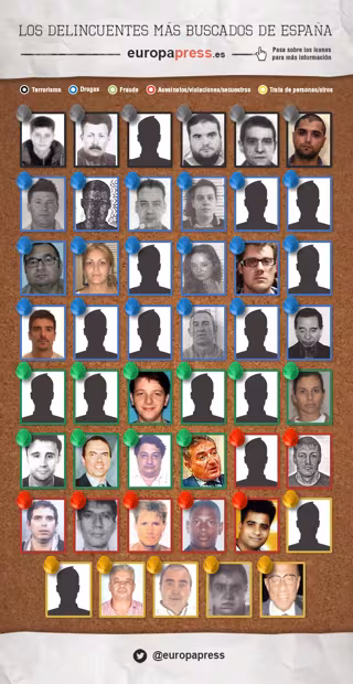 En el caso de los terroristas buscados, por el contrario, es la propia España la que reclama a cinco de ellos, mientras que Polonia busca al sexto por participación en banda criminal. De estos seis, tres son terroristas de ETA.