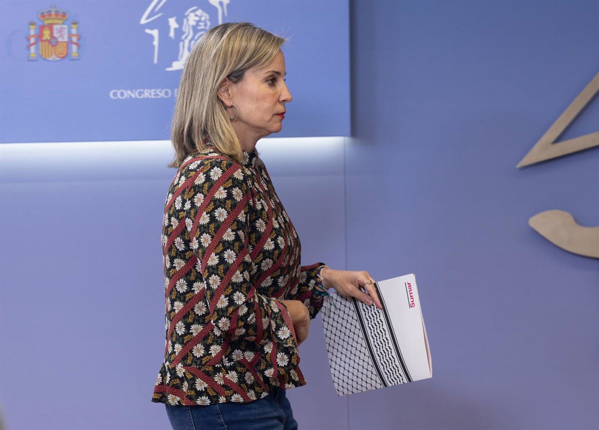 La portavoz de Sumar en el Congreso, Verónica Martínez, durante una rueda de prensa, previa a la Junta de Portavoces, en el Congreso, a 14 de octubre de 2025, en Madrid (España).- Eduardo Parra - Europa Press