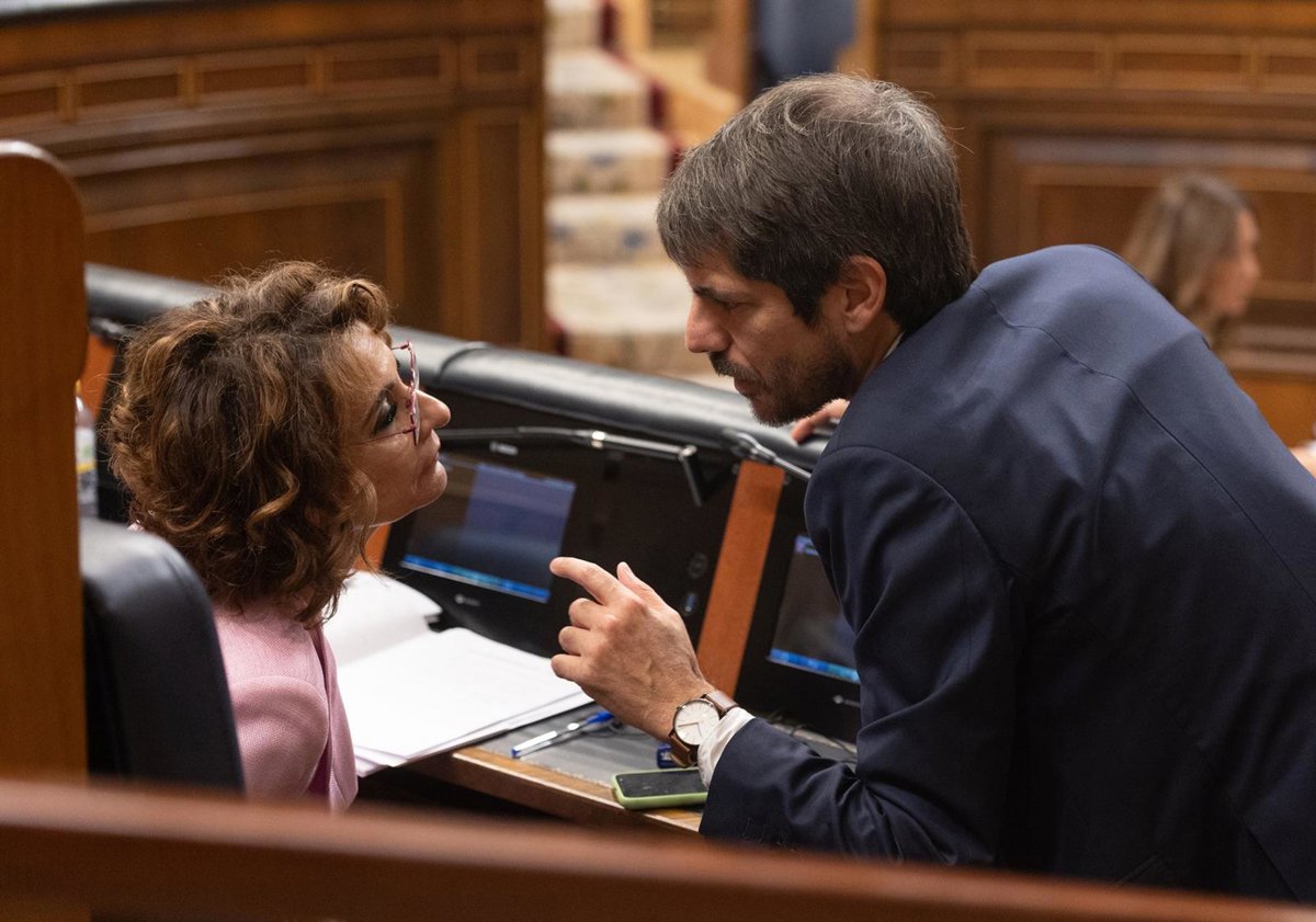 La vicepresidenta primera y ministra de Hacienda, María Jesús Montero, y el ministro de Cultura, Ernest Urtasun, durante una sesión de control al Gobierno, en el Congreso de los Diputados, a 22 de octubre de 2025, en Madrid (España). - Eduardo Parra - Europa Press