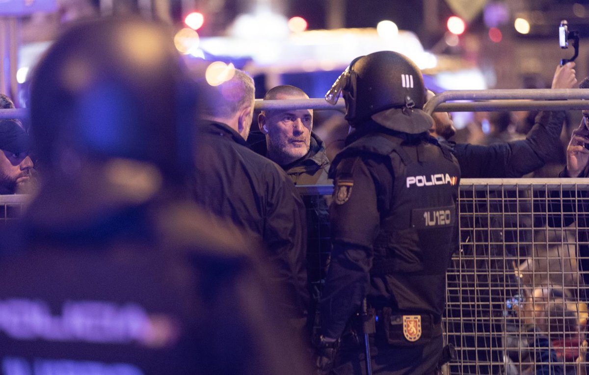 Archivo - Un policía nacional habla con el líder de Desokupa, Daniel Esteve, al Congreso de los Diputados, a 7 de noviembre de 2023, en Madrid (España). - Eduardo Parra - Europa Press - Archivo