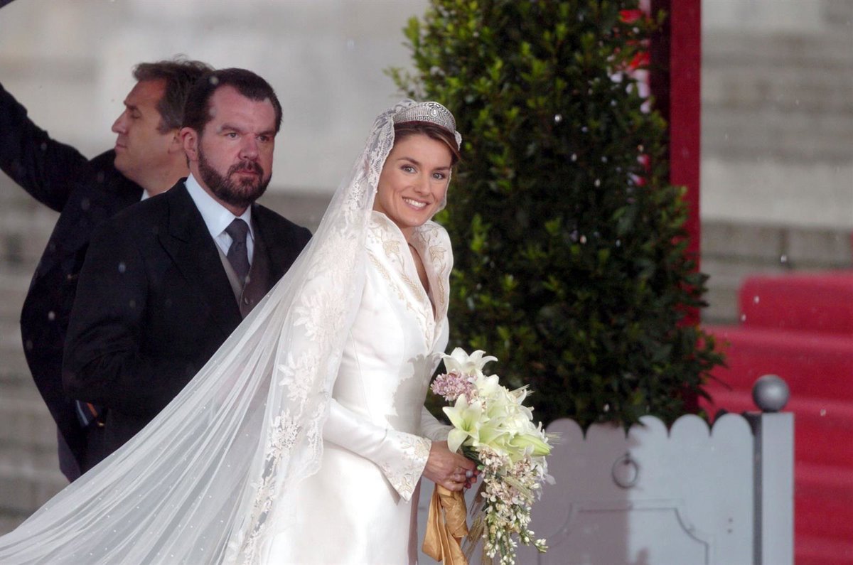 Archivo - LETIZIA ORTIZ ENTRA A LA ALMUDENA DEL BRAZO DE SU PADRE JESUS ORTIZ - EUROPA PRESS REPORTAJES - Archivo
