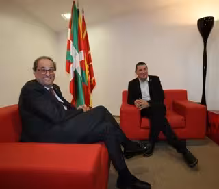 Archivo - El expresidente de la Generalitat Joaquim Torra en una reunión con el coordinador general de EH Bildu Arnaldo Otegi en San Sebastián. - Nagore Iraola- Europa Press - Archivo