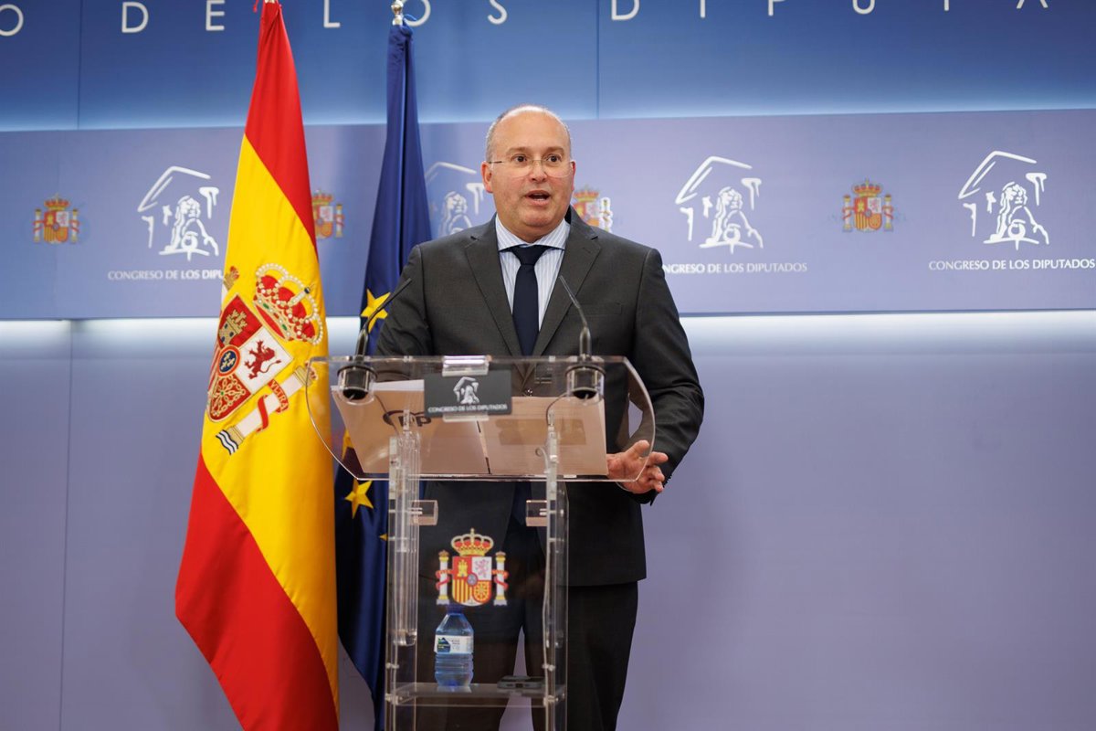 El portavoz del PP en el Congreso, Miguel Tellado, durante una rueda de prensa en el Congreso de los Diputados, a 16 de julio de 2024, en Madrid (España). Durante su comparecencia, Tellado, ha hablado sobre el ‘caso Begoña Gómez’ y los supuestos casos de - Alejandro Martínez Vélez - Europa Press