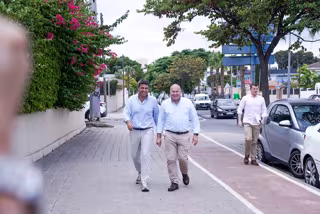 El presidente del PPCV, Carlos Mazón (i), y el secretario general del Partido Popular, Miguel Tellado (d), a su llegada a la Junta Directiva Provincial del PP de Alicante, a 25 de julio de 2025, en Alicante, Comunidad Valenciana (España). - Roberto Plaza - Europa Press