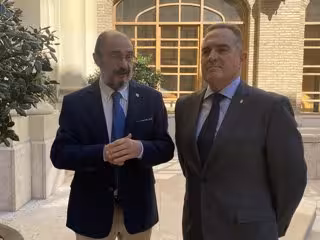 El presidente del Gobierno de Aragón, Javier Lambán, y el teniente general Francisco Gan Pampols. - EUROPA PRESS.