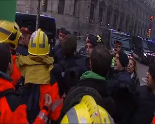 Una decena de bomberos se ha enfrentado este miércoles por la tarde, mientras se manifestaban junto a otros funcionarios, a otros tantos mossos antidisturbios de servicio, con insultos y algunos golpes, durante una marcha en Barcelona en protesta por los recortes de la Generalitat a los empleados públicos.