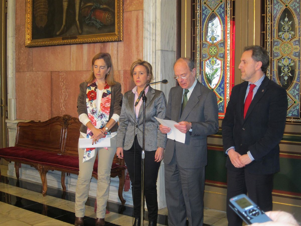 El teniente alcalde, Ibon Areso, ha dado lectura a una declaración firmada por los portavoces de PNV, Ibone Bengoetxea, del PSE, Alfonso Gil, y del y PP, Cristina Ruiz, en la que la Junta de Portavoces expresa "su más rotunda condena ante los gravísimos desperfectos que sufrió ayer la Villa, su comercio, hostelería y sector servicios, mobiliario y servicios públicos, y la ciudadanía en general".