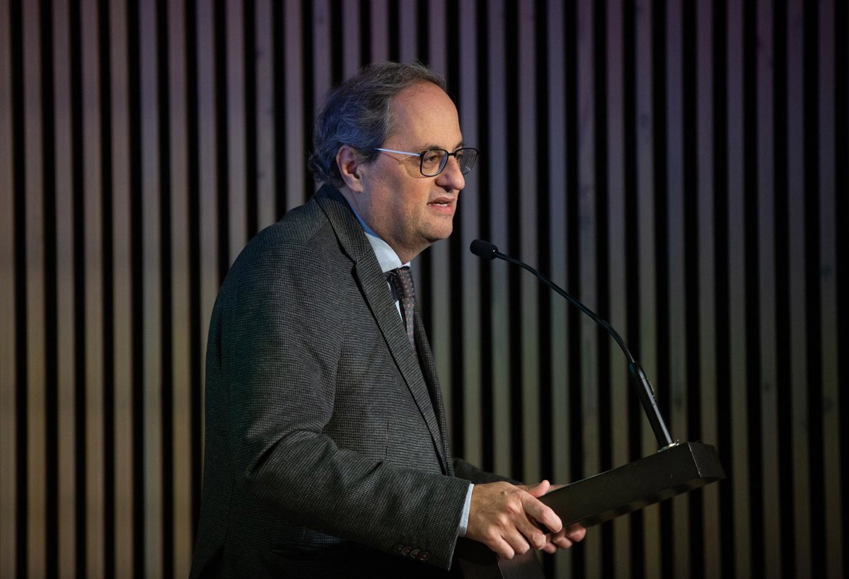 El presidente de la Generalitat, Quim Torra durante su intervención en el acto de Acuerdo Nacional para la Agenda 2030, en el recinto modernista de Sant Pau, en Barcelona (España), a 21 de febrero de 2020. - David Zorrakino - Europa Press