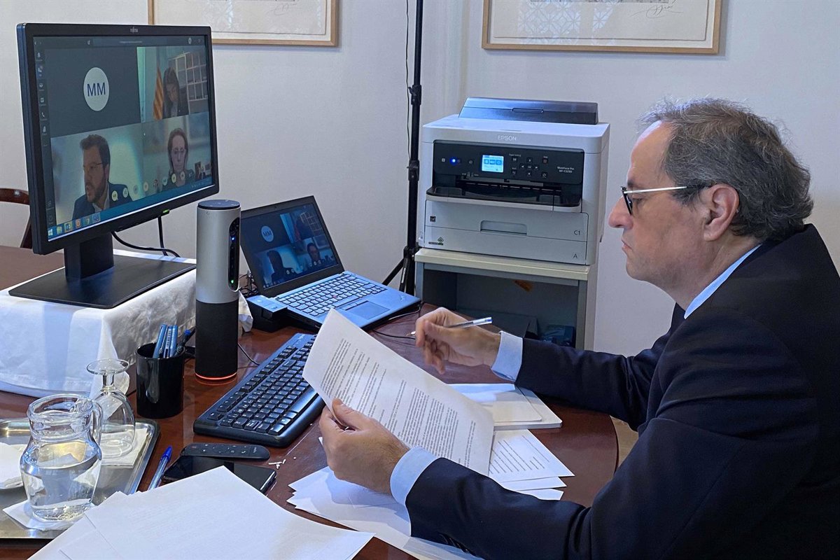 El presidente del Govern, Quim Torra, en la reunión telemática del Consell Executiu. - GENERALITAT