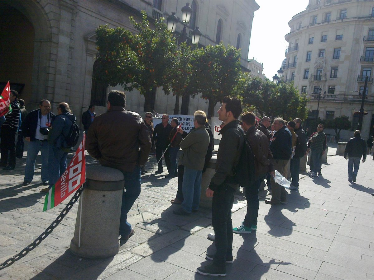 Un colectivo de trabajadores del mercado central de abastos de Sevilla, Mercasevilla, ha celebrado este lunes una concentración ante el Ayuntamiento hispalense al objeto de mostrar su rechazo a la posible externalización de servicios que sopesaría la directiva de esta sociedad mixta, participada mayoritariamente por el Consistorio y Mercasa. La comisión ejecutiva de la compañía, de hecho, ha facultado ya a la Dirección General del mercado central para "llevar a cabo las medidas que considere oportunas para evitar que la empresa entre en una situación de insolvencia".