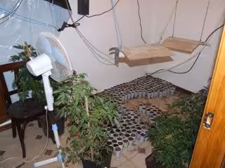 En su interior del inmueble había 50 maceteros preparados para la recogida de la marihuana, 13 cajas con diversos objetos para el consumo de la misma y de otras sustancias, dos frascos con marihuana y varias tarjetas de propaganda del local del distrito Centro. La Policía también encontró, en el patio interior del domicilio, un invernadero dotado de calefacción y ventilación, y un secadero, posiblemente relacionado con la preparación de la planta de la marihuana para su tráfico.