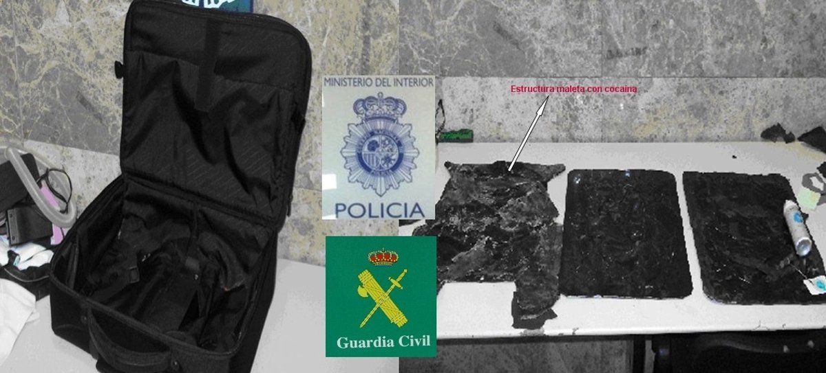 Así fue como el pasado mes de enero se detectó a uno de los miembros de la organización en un vuelo procedente de Ecuador que pretendía introducir por el aeropuerto de Barajas en Madrid dos kilos y medio de cocaína, ocultos en la estructura de una maleta, motivo por el que resultó detenido.