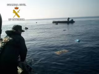Los tripulantes, al ver la patrullera de la Guardia Civil, intentaron huir y deshacerse del cargamento arrojando los fardos al mar, aunque pocos minutos después fueron interceptados y detenidos.