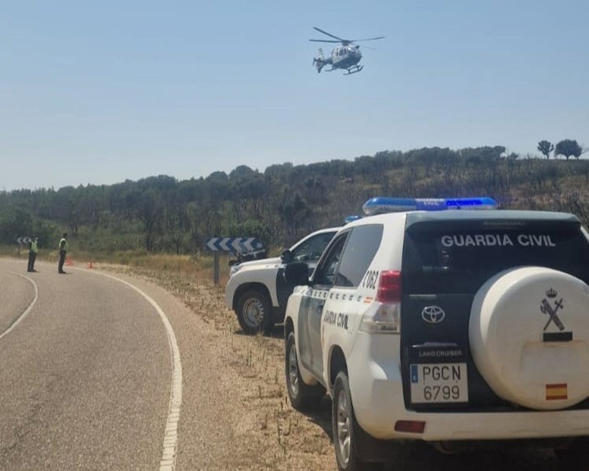 Archivo - Coches y un helicóptero de la Guardia Civil en la ZA-100. - SUBDELEGACIÓN DEL GOBIERNO EN ZAMORA - Archivo