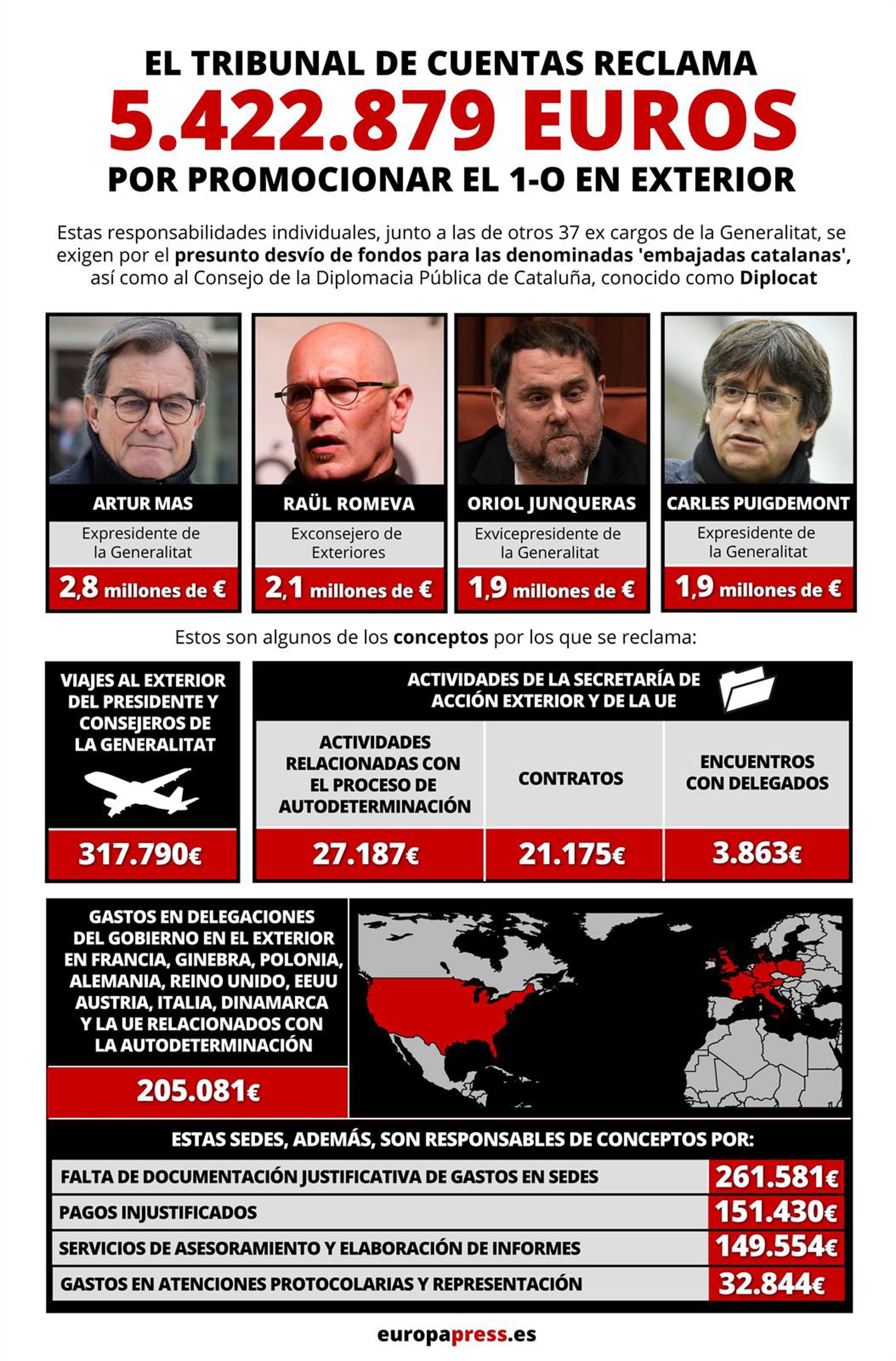 Infografía con responsabilidades contables que exige el Tribunal de Cuentas a ex altos cargos del Govern por promocionar el 1-O en el exterior - EUROPA PRESS