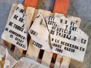 Archivo - Placa dañada que fue retirada de la vivienda donde vivió Largo Caballero - UGT - Archivo