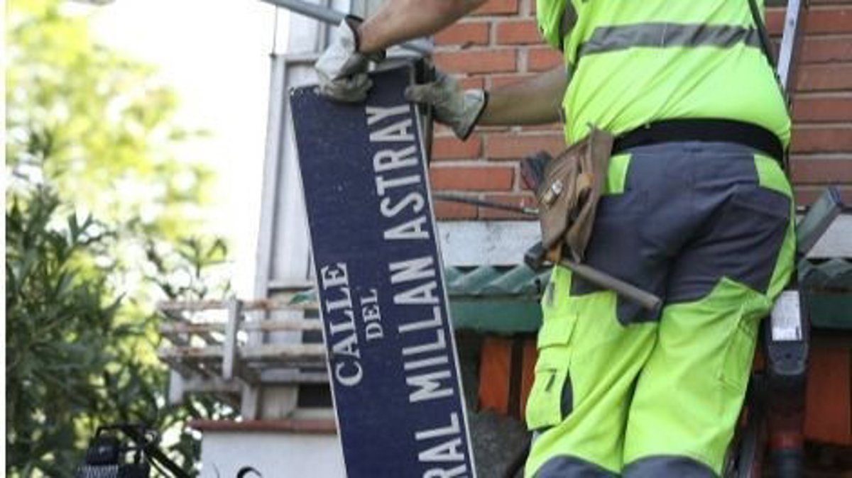 Archivo - Retirada de la placa a la calle dedicada al general Millán Astray - DAVID ARENAL (MÁS MADRID) - Archivo