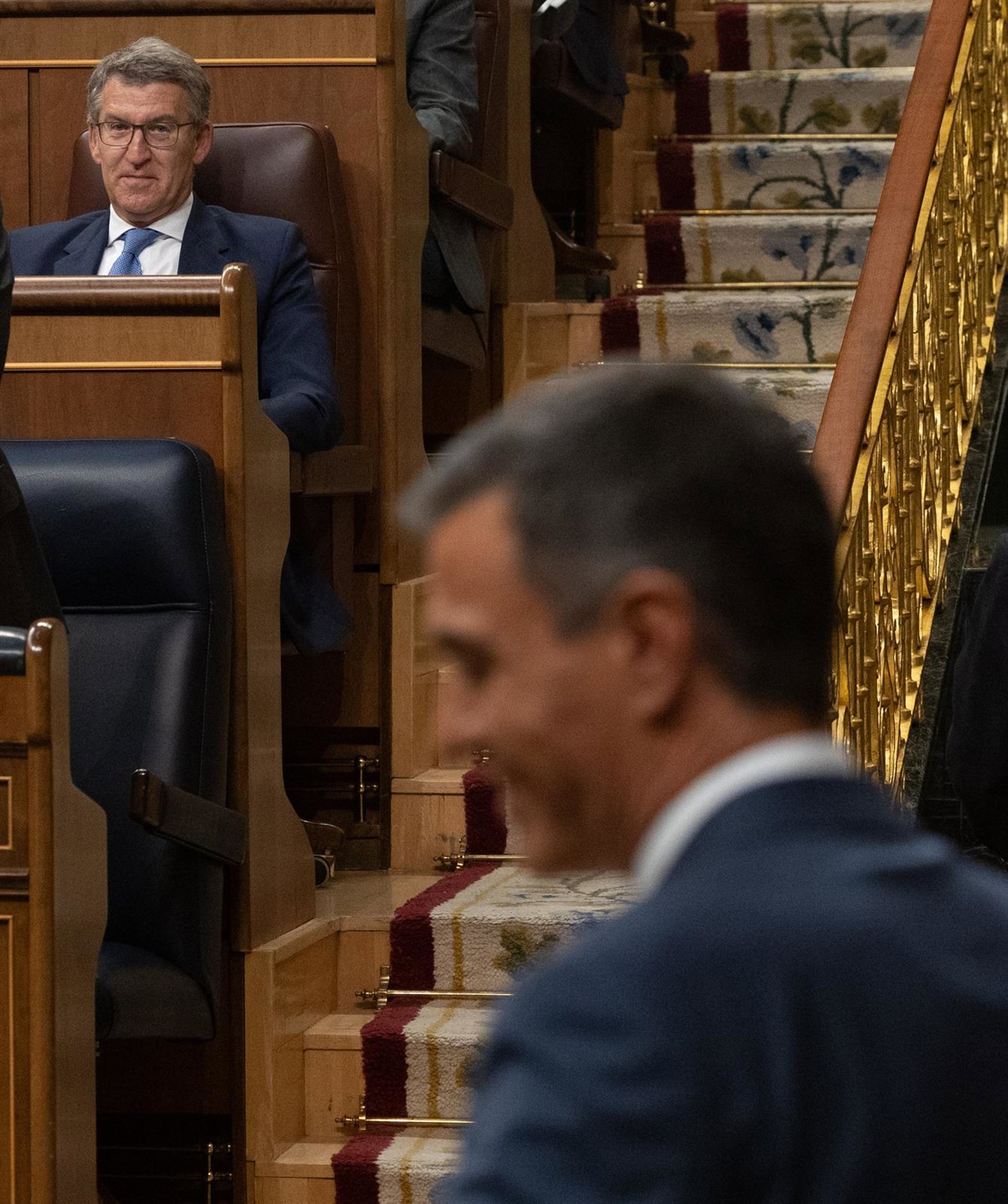 Archivo - El presidente del Partido Popular, Alberto Núñez Feijóo, en una sesión Congreso con el socialista Pedro Sánchez - Eduardo Parra - Europa Press - Archivo