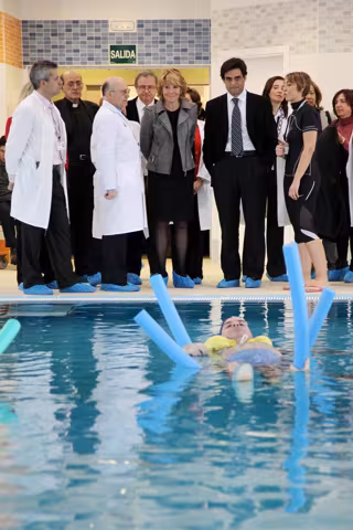 Aguirre se desplazó hasta el Pinar de San José, en Carabanchel, para inaugurar la unidad de terapia del agua de la Fundación, un servicio pionero en la Comunidad de Madrid que atiende a una media de 20 personas al día, todas ellas aquejadas de graves discapacidades físicas.