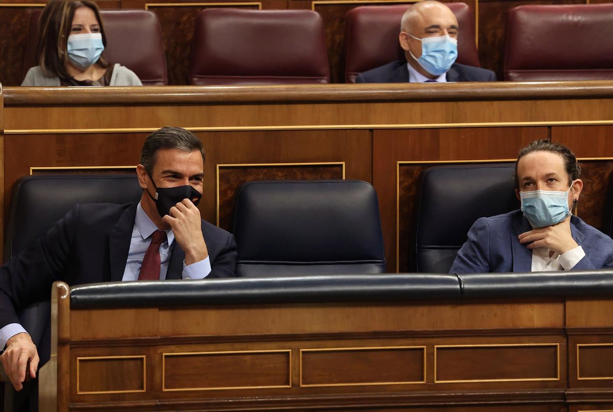 El presidente del Gobierno, Pedro Sánchez (i); y el vicepresidente segundo del Gobierno, Pablo Iglesias (d), durante el pleno en el que se debate la moción de censura planteada por Vox, en el Congreso de los Diputados, Madrid (España). - EUROPA PRESS/E. Parra. POOL - Europa Press