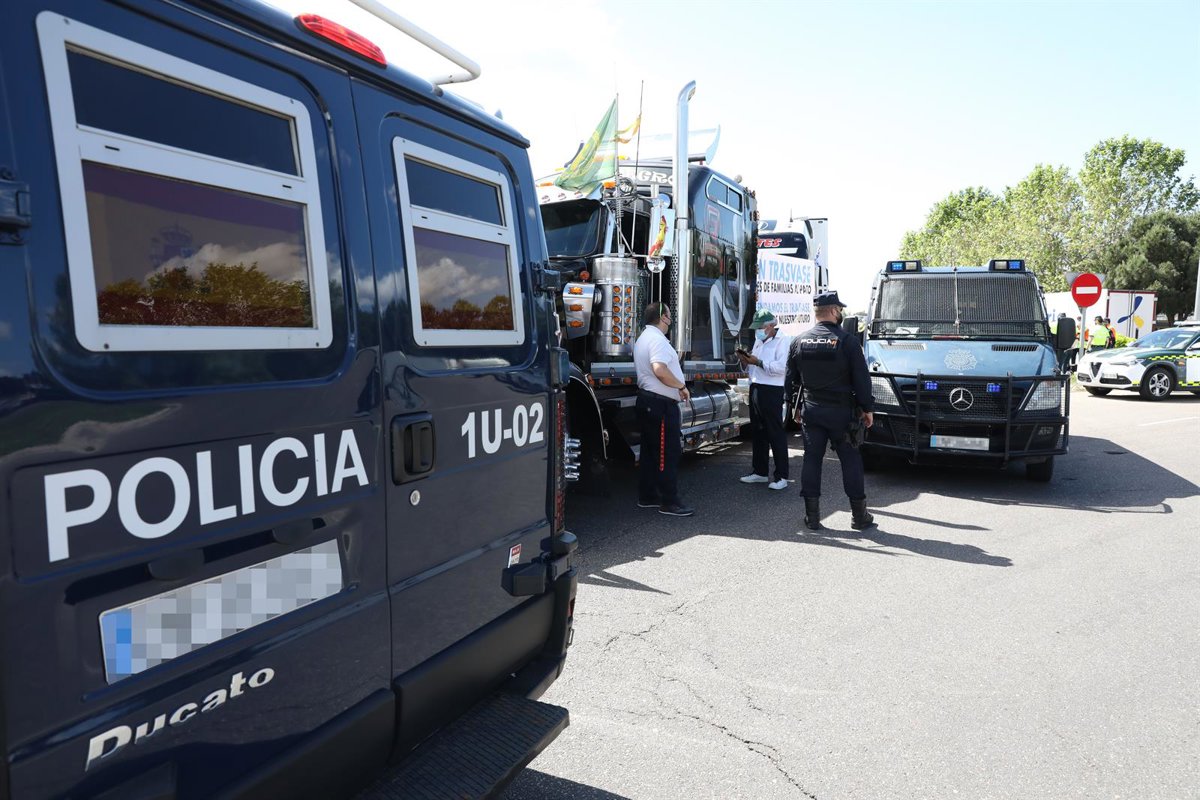 Archivo - Agentes de Policía Nacional vigilan la caravana de vehículos y camiones desde IFEMA para protestar contra el recorte de caudal del Trasvase Tajo-Segura. - Marta Fernández Jara - Europa Press - Archivo