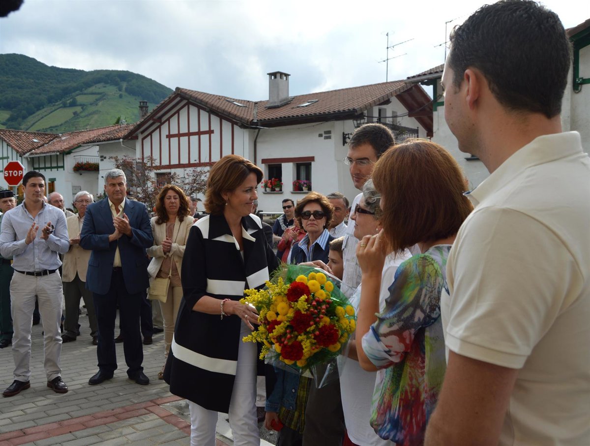 Acto seguido, la presidenta del Gobierno de Navarra y de UPN, Yolanda Barcina, entregó un ramo de flores a su viuda, Reyes Zubeldia, y todos los asistentes se dirigieron a la iglesia de la localidad, donde tuvo lugar una eucaristía en memoria de Múgica.