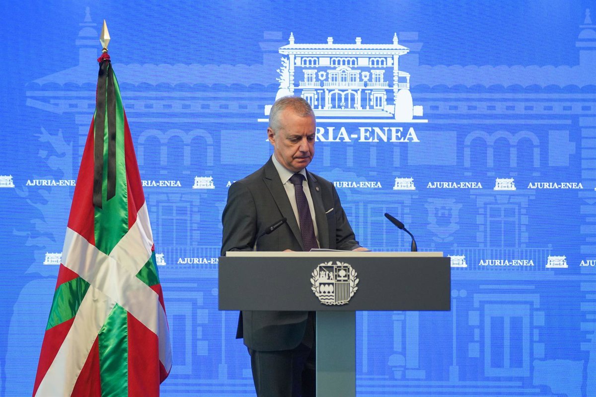 El lehendakari, Iñigo Urkullu, en su comparecencia ante los medios de comunicación para leer una declaración institucional con motivo del fallecimiento de Jose Antonio Ardanza - Iñaki Berasaluce - Europa Press