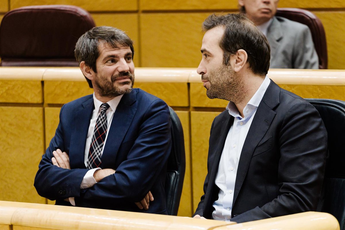 Archivo - El ministro de Cultura, Ernest Urtasun (i) y el ministro de Economía, Comercio y Empresa, Carlos Cuerpo (d), durante una sesión plenaria en el Senado, a 25 de noviembre de 2025, en Madrid (España). - Carlos Luján - Europa Press - Archivo