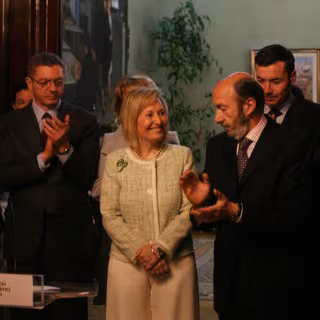 A continuación, Rubalcaba recordó que el primer puesto que tuvo Valcarce en la Administración del Estado fue obra suya. "Atisbando el futuro, la hice jefa de la Inspección de Educación de León. No es exactamente lo mismo, pero la palabra tiene sus resonancias", dijo.