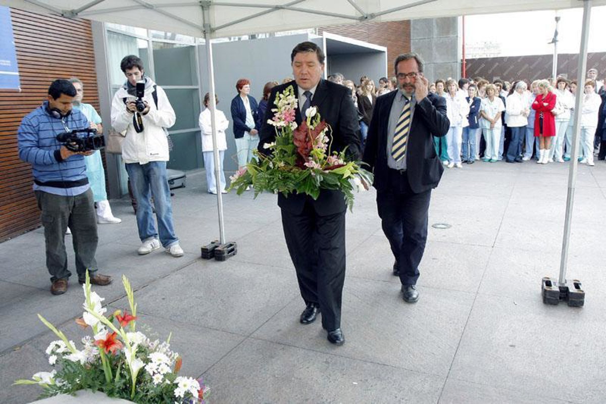 Además, la fachada del antiguo edificio de trauma, que hoy lleva el nombre 2 de Noviembre en recuerdo del accidente, mostraba un cartel alusivo a la conmemoración con los nombres de los cuatro fallecidos y la frase: 'La grandeza del hospital la albergan sus trabajadores'.
