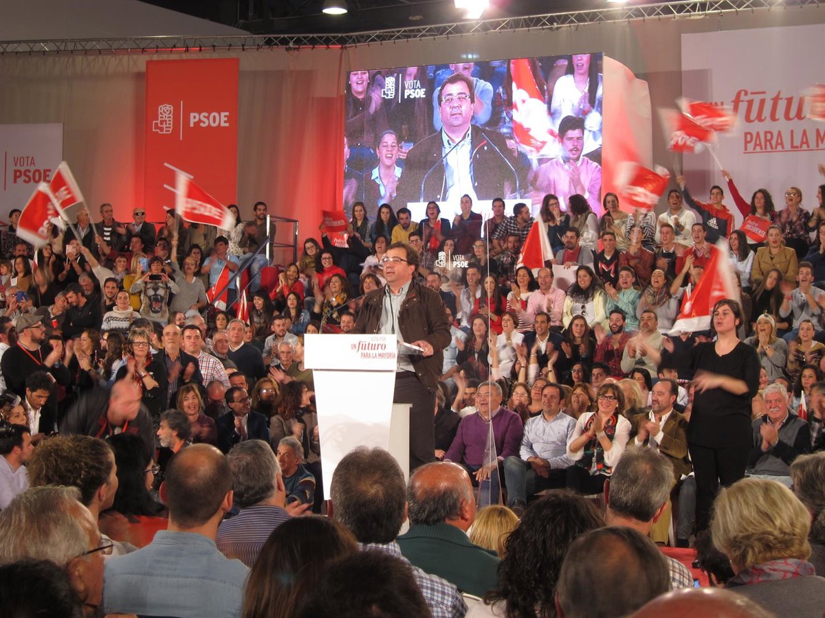 Vara ha hecho estas declaraciones durante su intervención en el acto central de campaña en Extremadura del Partido Socialista celebrado en las instalaciones feriales de Badajoz (Ifeba) ante unos 4.500 asistentes y en el que han intervenido el expresidente del Gobierno, Felipe González y el candidato a la Presidencia del Gobierno, Pedro Sánchez.