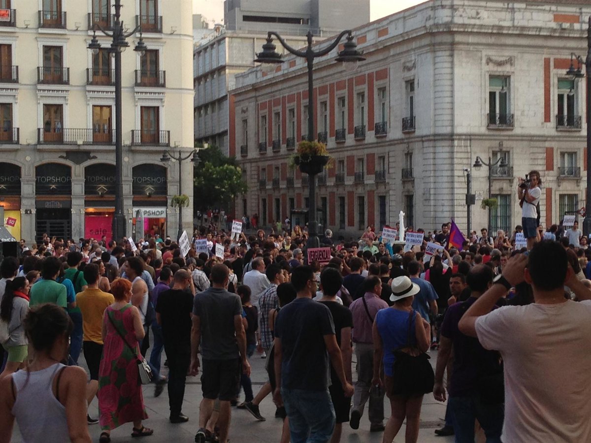 Finalmente, los varios centenares de personas congregadas en la Puerta del Sol se han colocado en la parte central de la plaza madrileña para seguir coreando sus consignas contra la corrupción política, a las que en este céntrico enclave madrileño se han sumado los cánticos contra la Policía Nacional tras un pequeño incidente.